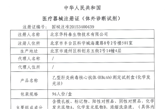 Obtain 5 chemiluminescence registration certificates of hepatitis B;